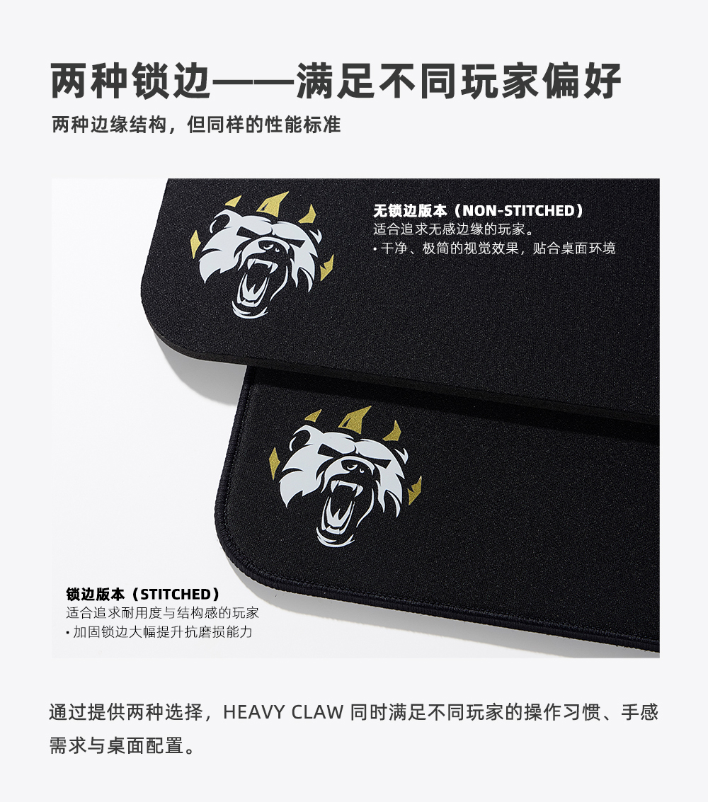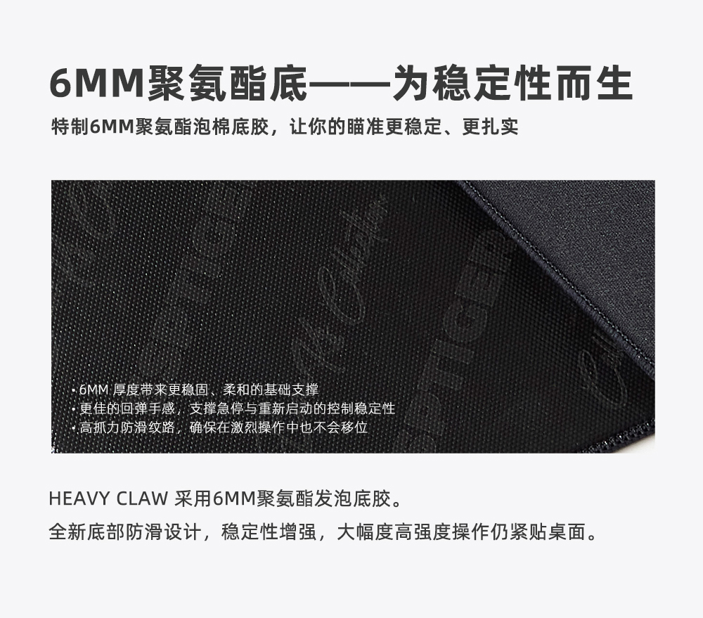特制平织表面带来精致的摩擦质感、可控的滑动与清晰的微调手感,即使在高强度的激烈操作中也能保持手感稳定、定位精准。